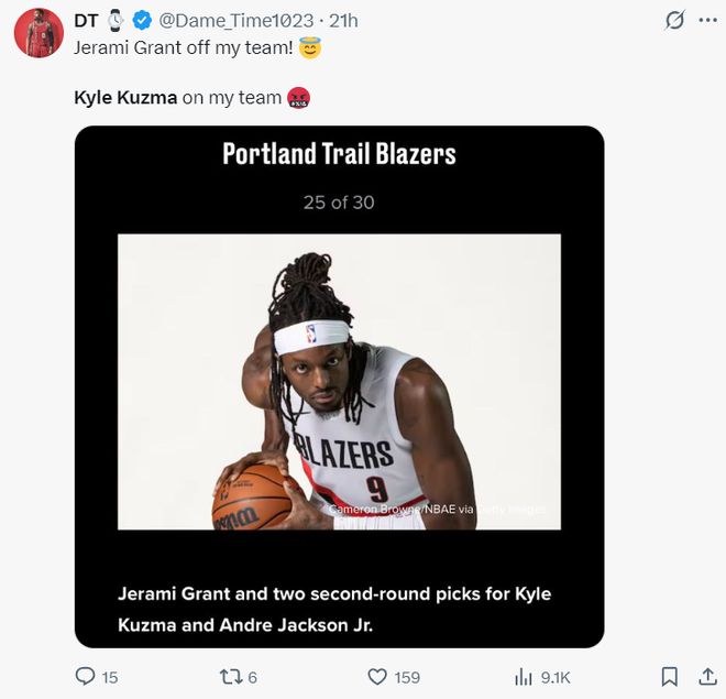另一套是开拓者/雄鹿交易,雄鹿送出库兹马、安德森-杰克逊得到杰拉米-格兰特、两个未来次轮签。(实际上格兰特也是负资产)