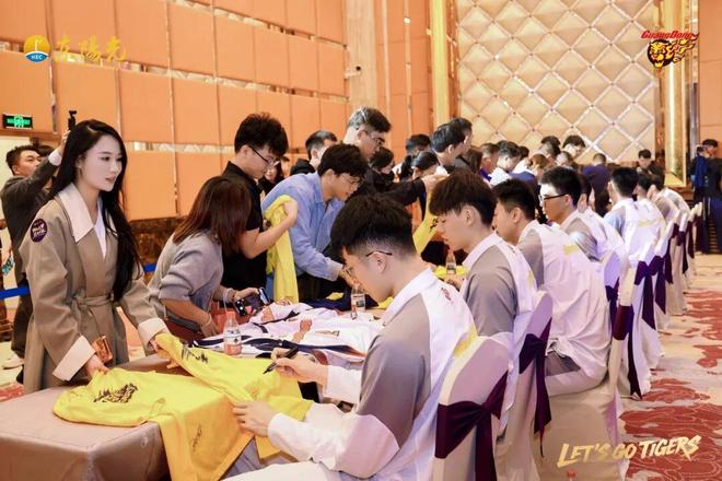 仪式前,全体球员与来宾签名互动