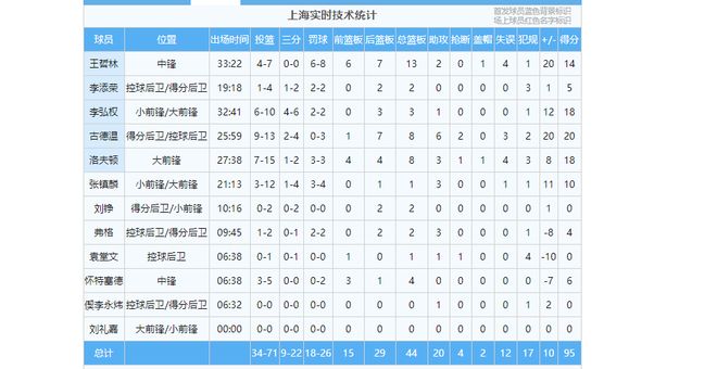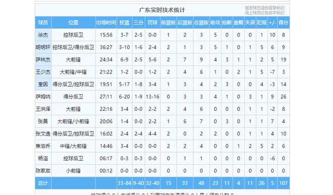 其中外援萨林杰得到19分、奎因得到14分、萨姆纳得到26分。外援累计得到59分,外援得分占比约为55.14%。