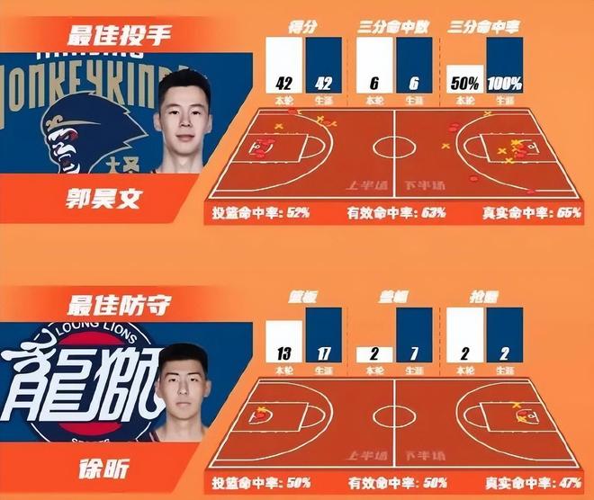 首轮比赛结束后,CBA官方公布了首轮比赛的最佳阵容,分别是广东男篮的萨林杰、青岛男篮的赵嘉义、新疆男篮的齐麟、北控男篮的里勒,以及同曦男篮的郭昊文。另外广州男篮的徐昕,在这轮比赛中得到了6分13个篮板1次助攻2次抢断2次封盖的数据,帮助广州男篮战胜了四川男篮。虽然从数据来看,徐昕在进攻端的表现并不亮眼,不过他在防守端的贡献却非常明显,正负值达到了惊人的+26,全场最高。被CBA官方评为首轮最佳防守球员,徐昕实至名归。